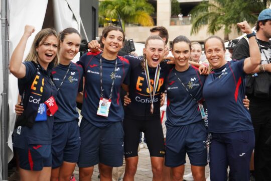 La selección española femenina ha vivido unos días extraordinarios en Kigali. Las medallas de oro y plata de la junior navarra Paula Ostiz – en Ruta y CRI- la medalla de bronce de Paula Blasi en Sub 23, tuvo el broche con la conseguida por Mavi García en Elite. ” Estábamos celebrando las medallas de Ostiz y queríamos más”, comentaba Pascual. “Después, en la cena lo celebramos por todo lo alto. Dormimos muy bien por el esfuerzo y la satisfacción”, concluía la seleccionadora.